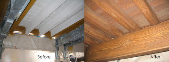 Ceilings – Faux Weathered Wood Finish Painted on White Surface